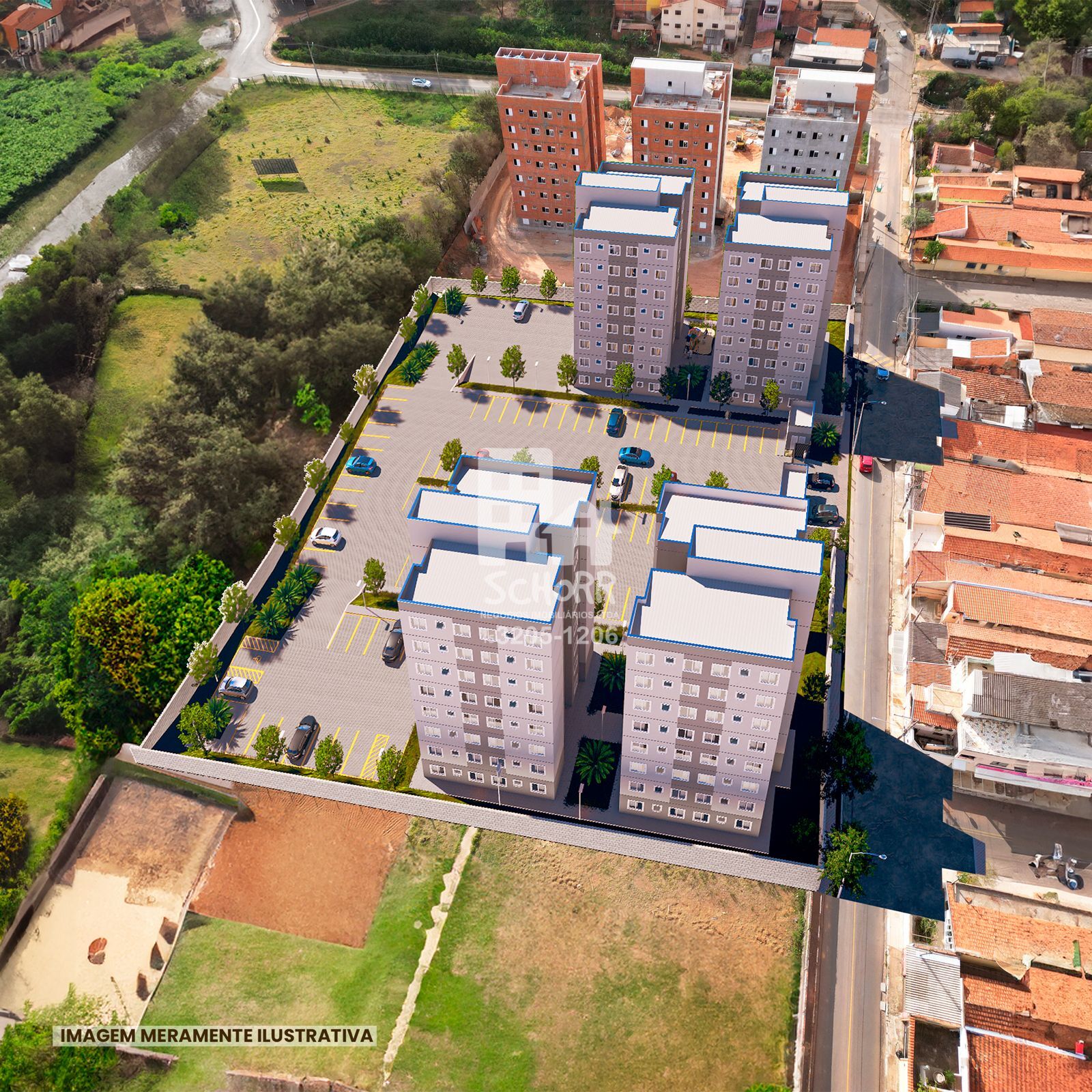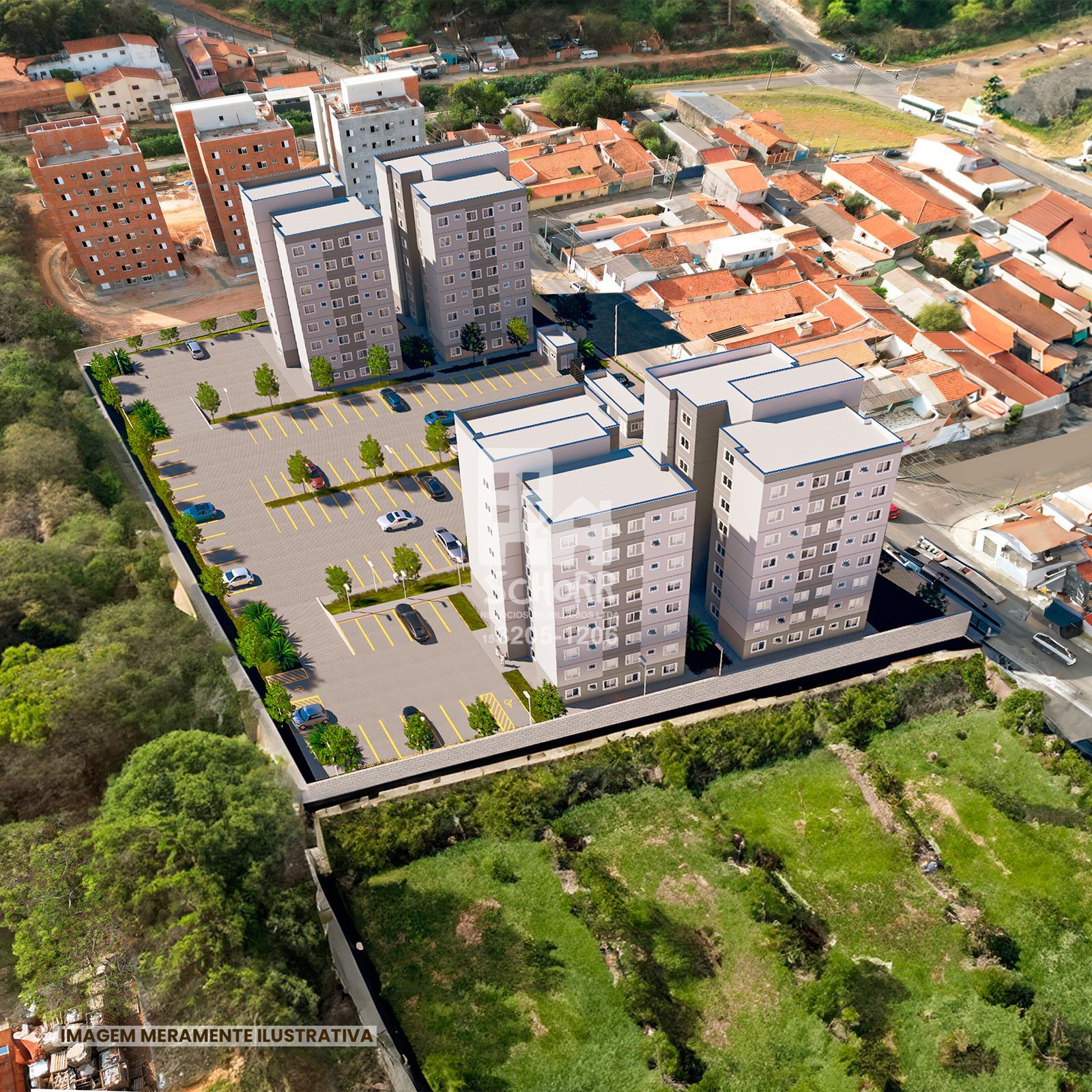 Os apartamentos possuem 2 dormitórios, aproximadamente 45 m² de área privativa, além de 1 vaga de estacionamento por unidade, com vagas acessíveis conforme normas técnicas.