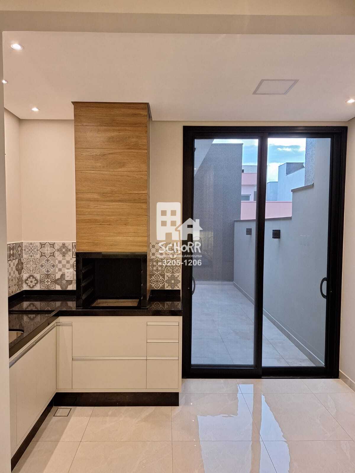 Cozinha espaçosa integrada à área gourmet, com móveis planejados